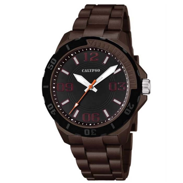 Ένα κομψό ρολόι της CALYPSO από καφέ ρητίνη με καφέ καντράν