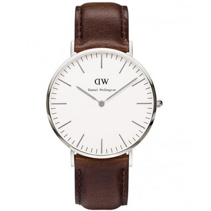 Από τον οίκο Daniel Wellington το Bristol Ένα ρολόι από ατσάλι και καφέ δερμάτινο λουράκι.