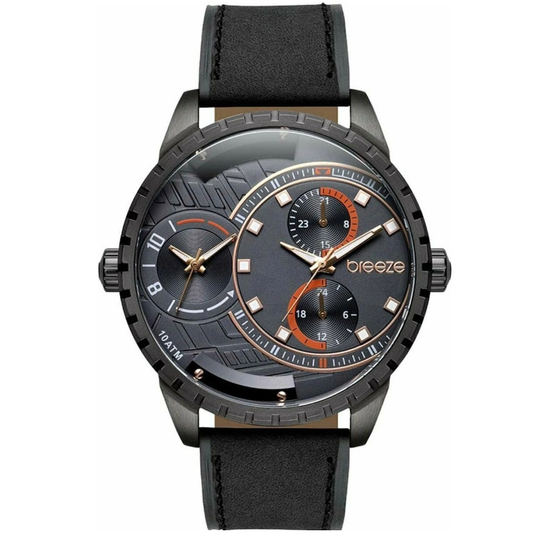 ΡΟΛΟΙ BREEZE 110862.2 BREEZE Alchemist Dual Time Black Leather Strap