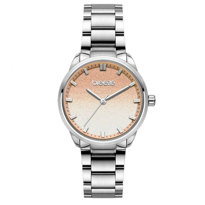 Αριστουργηματική σχεδίαση καντράν ντυμένη με glitter σε ανεπανάληπτες ιριδίζουσες degrad? διαβαθμίσεις στις πιο hot αποχρώσεις. Υπέροχη, μίνιμαλ στεφάνη με γυαλιστερό φινίρισμα για αψεγάδιαστο στιλ 24/7. Μπρασελέ από μασίφ ατσάλι με συνδυασμό ματ επιμετάλλωσης στο κέντρο και γυαλιστερής επιμετάλλωσης στα άκρα. Τί άλλο χρειάζεστε για να μπείτε τον αστερισμό της BREEZE