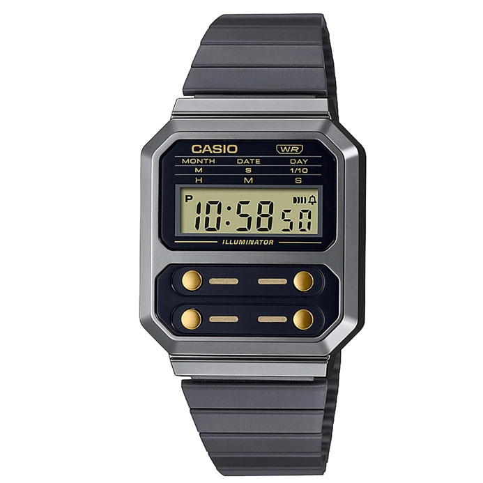 ΡΟΛΟΙ CASIO A-100WEGG-1A2EF CASIO Vintage Chronograph Black Stainless Steel Bracelet