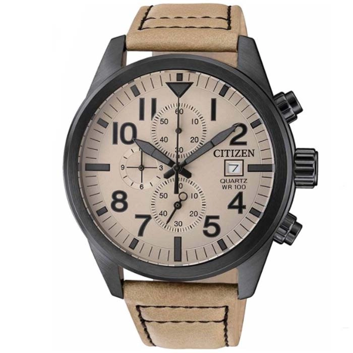 ΡΟΛΟΙ CITIZEN AN3625-07X CITIZEN Mens Chronograph Beige Leather Strap