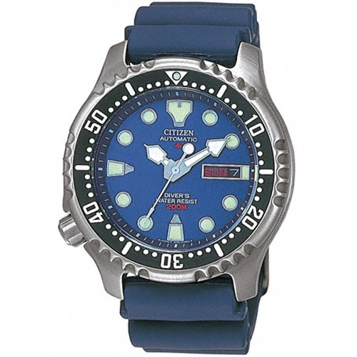 Από τη σειρά Promaster Automatic Divers της Citizen ένα ρολόι από ανοξείδωτο ατσάλι και μπλε καουτσούκ ιδανικό για τα υδάτινα σπορ.