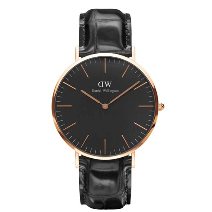 Από τον οίκο Daniel Wellington το Classic Black Reading ένα ρολόι από επιχρυσωμένο ροζ ατσάλι και μαύρο δερμάτινο λουράκι