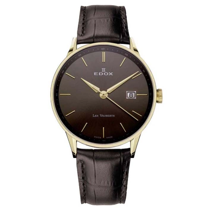 Από τον οίκο Edox ένα ρολόι από χρυσό ανοξείδωτο ατσάλι και καφέ δέρμα με καφέ καντράν