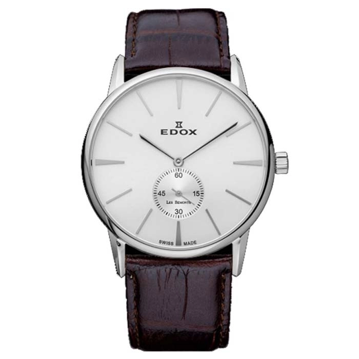 Από τον οίκο Edox ένα ρολόι από ανοξείδωτο ατσάλι με ασημί καντράν και καφε δέρμα