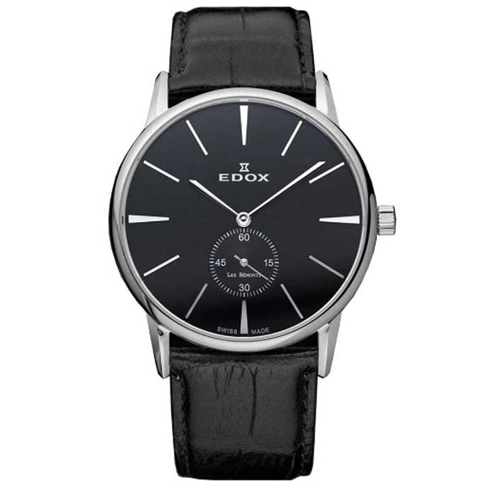 Από τον οίκο Edox ένα ρολόι από ανοξείδωτο ατσάλι με μαύρο καντράν και μαύρο δέρμα