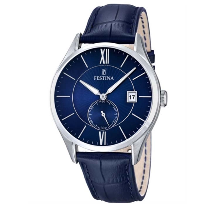 Ένα ρολόι του οίκου Festina από ανοξείδωτο ατσάλι με μαύρο καντράν με μαύρο δέρμα