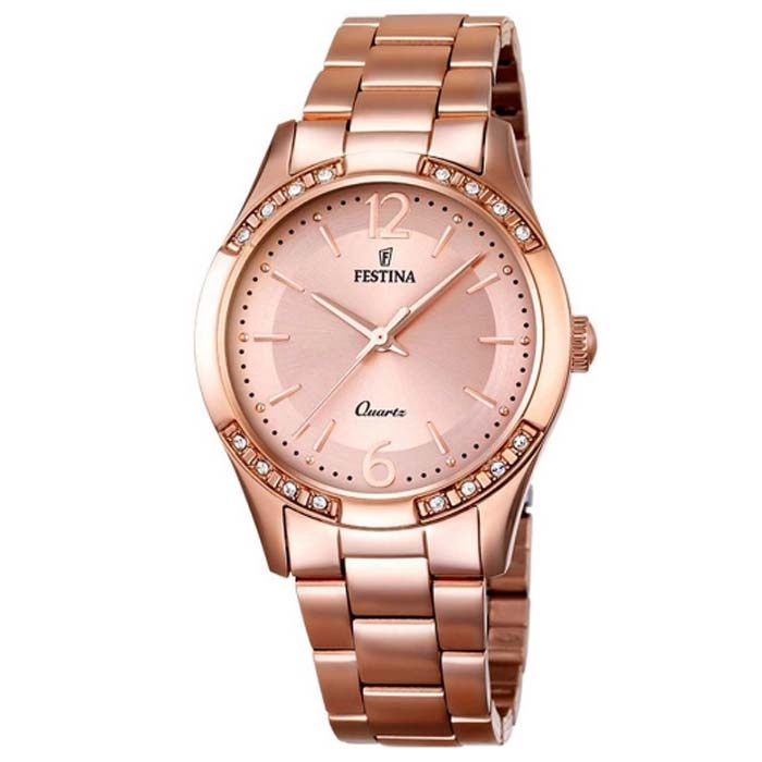 Ένα σπορ ρολόι του οίκου Festina από επιχρυσωμένο ροζ ανοξείδωτο ατσάλι με ροζ χρυσό καντράν