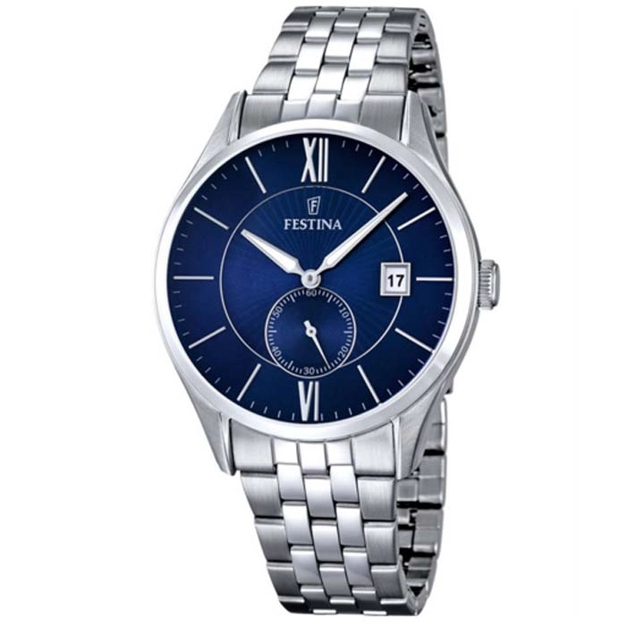 Ένα ρολόι του οίκου Festina από ανοξείδωτο ατσάλι με μπλε καντράν