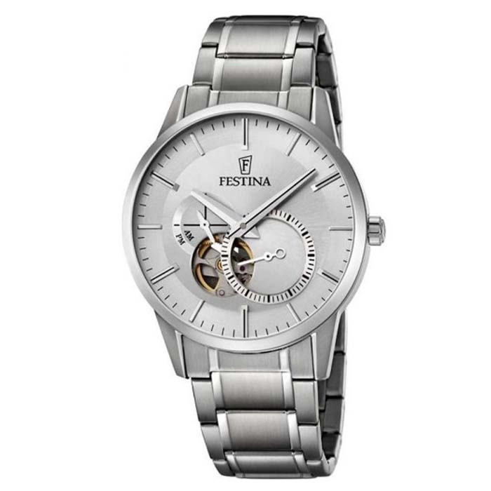 Ένα σπορ ρολόι του οίκου Festina από ανοξείδωτο ατσάλι με γκρι καντράν