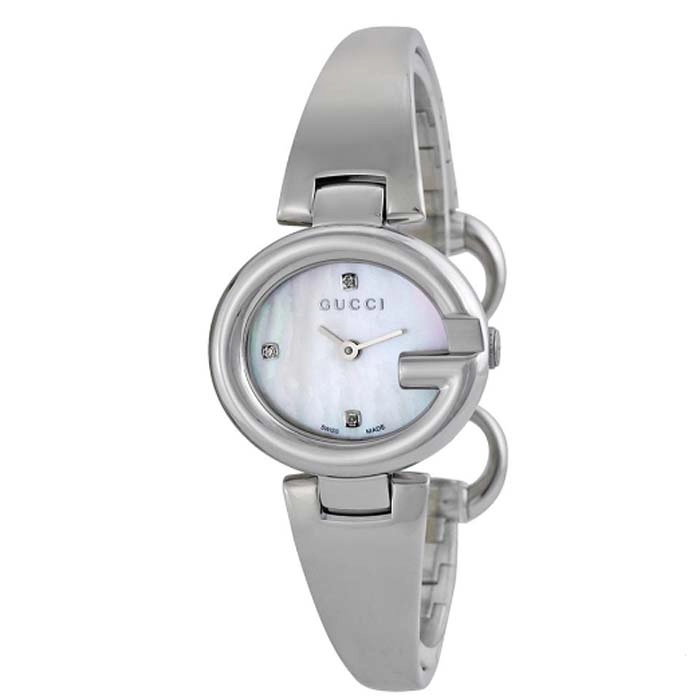 Εντυπωσιακό ρολόι του οίκου GUCCI από ανοξείδωτο ατσάλι με φίλντισι καντράν και διαμάντια