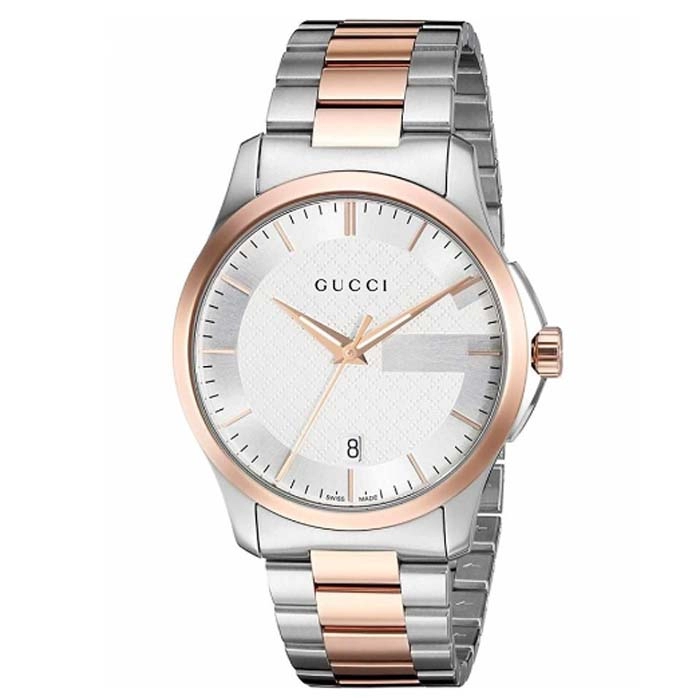 Το G-Timeless είναι ένα κομψό και μοντέρνο μοντέλο της GUCCI από ανοξείδωτο ατσάλι και ροζ χρυσό ανοξείδωτο ατσάλι με λευκό καντράν