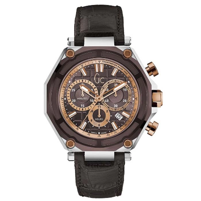 Από τη GUESS Collection ένα ρολόι με ελβετικό μηχανισμό από Ανοξείδωτο ατσάλι και καφέ δέρμα.