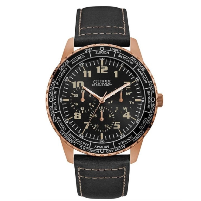 ΡΟΛΟΙ GUESS  W1170G2 GUESS Mens Black Leather Strap