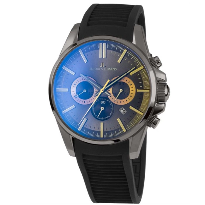 Ρολόι Jacques LEMANS 1-1799O Jacques LEMANS Liverpool Chronograph Black Silicone Strap