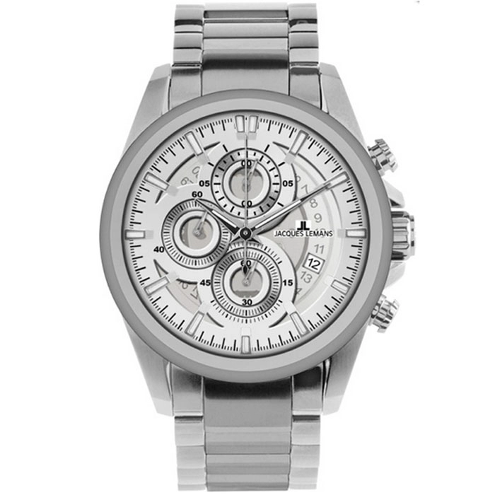 Μοντέρνος χρονογράφος του οίκου Jacques LeMans της σειράς Liverpool, από ανοξείδωτο ατσάλι και ασημί καντράν.