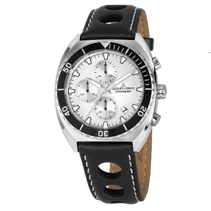 Ρολόι Jacques LEMANS 1-2041B Jacques LEMANS Serie 200 Chronograph Black Leather Strap