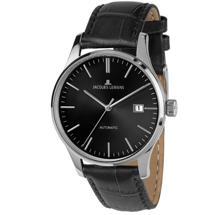Ρολόι Jacques LEMANS 1-2073A Jacques LEMANS London Automatic Black Leather Strap