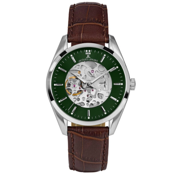 Ρολόι Jacques LEMANS 1-2087B Jacques LEMANS Derby Automatic Brown Leather Strap