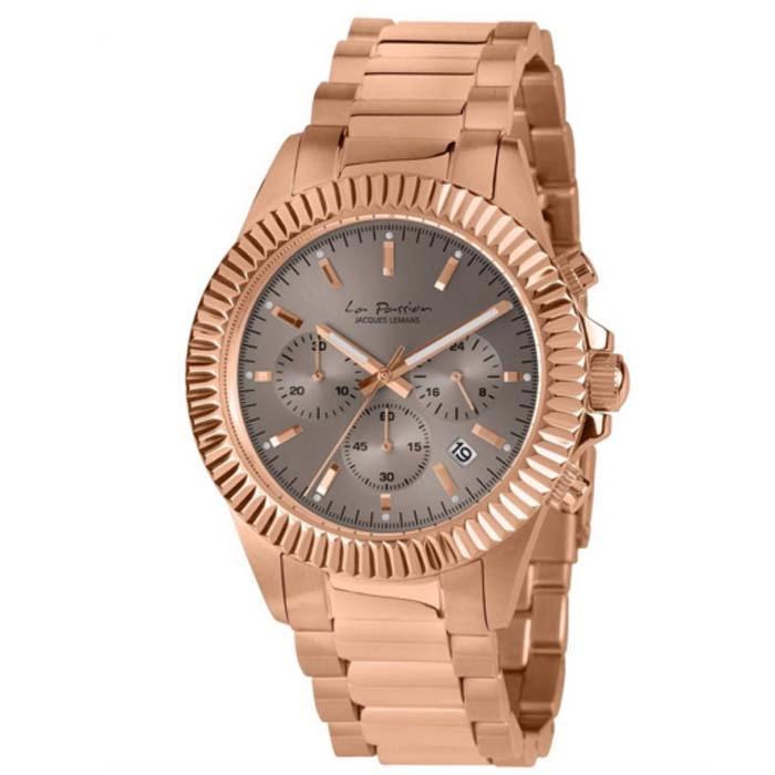 Από τη σειρά La Passion του οίκου Jacques Lemans ένα ρολόι χρονογράφος από ροζ χρυσό ανοξείδωτο ατσάλι με καφέ καντράν