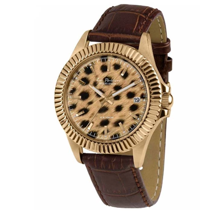 Από τη σειρά La Passion της Jacques LEMANS ένα ρολόι από επιχρυσωμένο ανοξείδωτο ατσάλι και καφέ δερμάτινο λουράκι.
