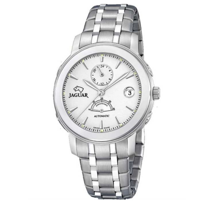 Από τον οίκο Jaguar ένα εντυπωσιακό ρολόι από ανοξείδωτο ατσάλι,αυτόματο μηχανισμό και ασημί καντράν με κρύσταλλο σαπφείρου