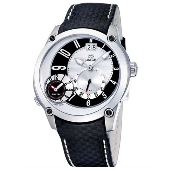 Από τον οίκο Jaguar ένα εντυπωσιακό ρολόι από ανοξείδωτο ατσάλι και ασημί καντράν με μαύρο δερμάτινο λουράκι