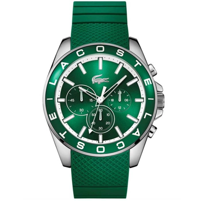 Από τον οίκο Lacoste ενα μοντέρνο ρολόι της σειράς Westport απο ανοξείδωτο ατσάλι με πράσινο καντράν και πράσινο καουτσούκ λουράκι