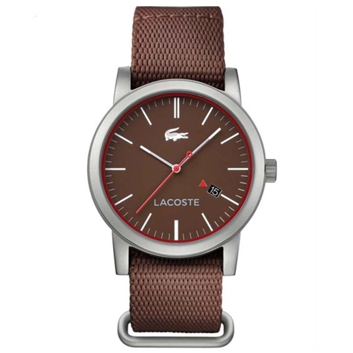 Από τον οίκο Lacoste ενα μοντέρνο ρολόι της σειράς Metro απο ανοξείδωτο ατσάλι με καφέ καντράν και καφέ υφασμάτινο λουράκι