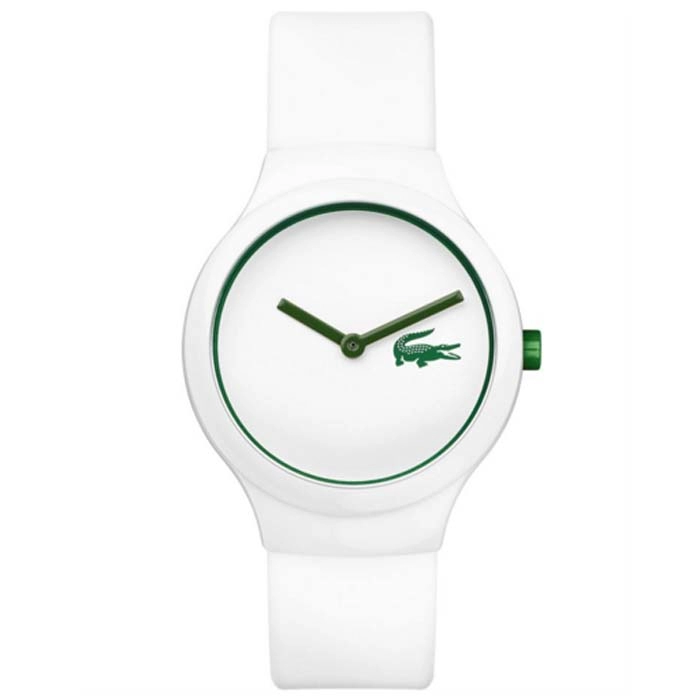 Από τον οίκο Lacoste ενα μοντέρνο ρολόι της σειράς Goa απο πλαστικό με λευκό καντράν και λευκό καουτσούκ λουράκι