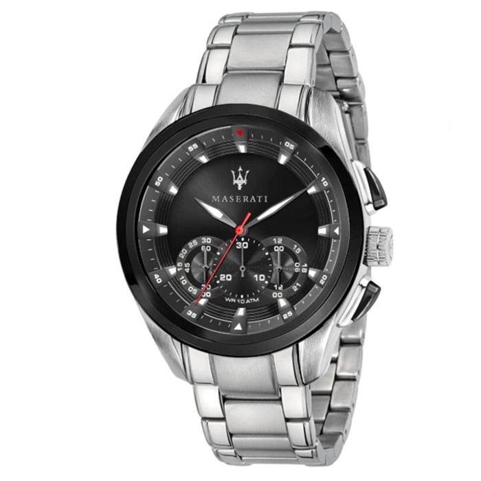Ένας μοντέρνος χρονογράφος από ανοξείδωτο ατσάλι με το χαρακτηριστικό sport/casual design της MASERATI, σήμα κατατεθέν του κορυφαίου οίκου.