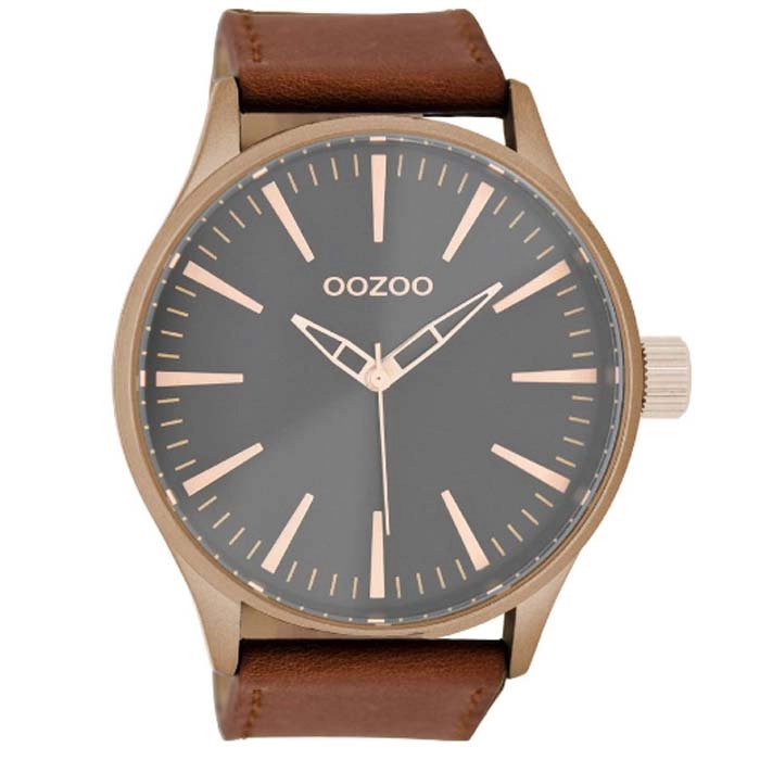 Ένα μοντέρνο ρολόι με δερμάτινο λουράκι από τον οίκο OOZOO, γνωστό για τις trendy σχεδιαστικές του επιλογές.
