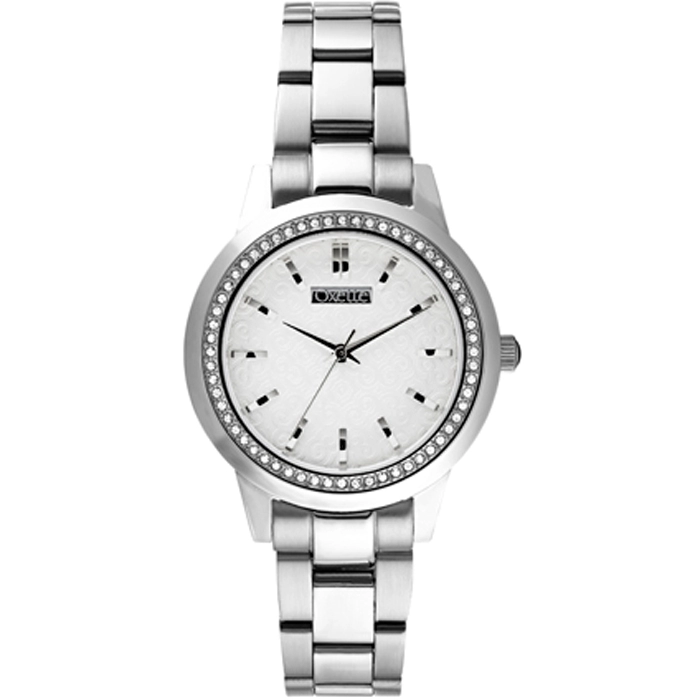Μοντέρνο γυναικείο ρολόι της εταιρίας OXETTE από ανοξείδωτο ατσάλι με κρύσταλλα και λευκό καντράν.