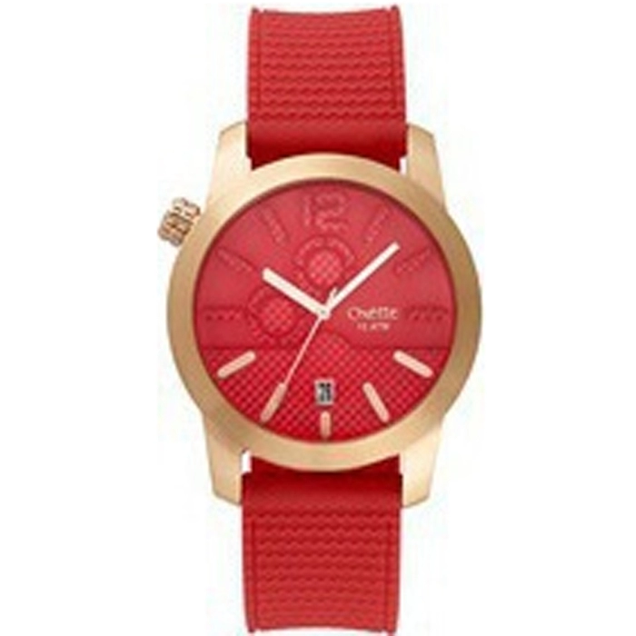 Μοντέρνο γυναικείο ρολόι της εταιρίας OXETTE από επιχρυσωμένο ανοξείδωτο ατσάλι και κόκκινο καντράν με κόκκινο καουτσούκ