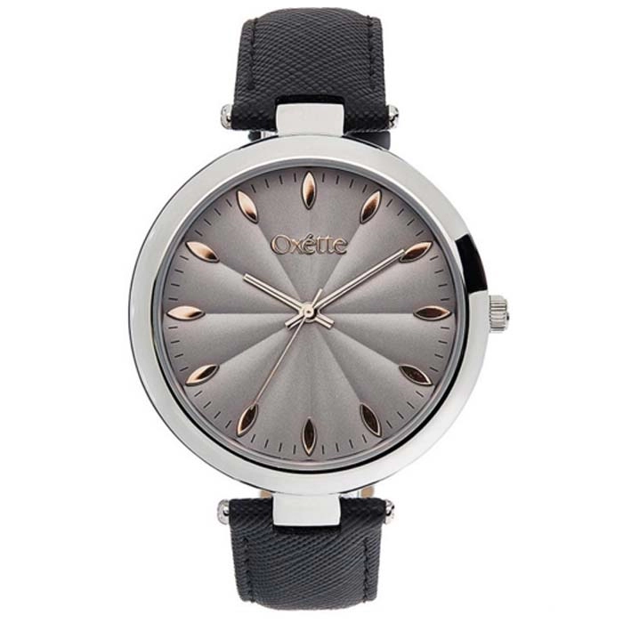 Εντυπωσιακό ρολόι της OXETTE από ανοξείδωτο ατσάλι και μαύρο καντράν με μαύρο δέρμα