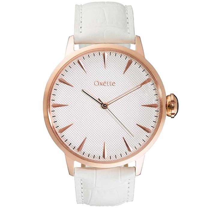 Ένα όμορφο ρολόι με κάσα από ανοξείδωτο ατσάλι και λευκό καντράν και λευκό δέρμα από την Οxette.