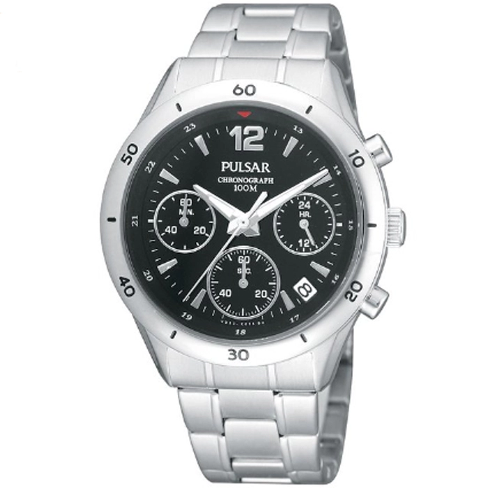 Ένας χρονογράφος της Pulsar από ανοξείδωτο ατσάλι και μαύρο καντράν.