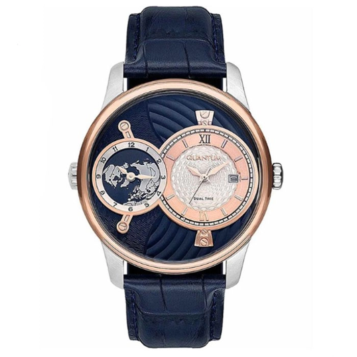 ΡΟΛΟΙ QUANTUM ADG737.599 QUANTUM Adrenaline Dual Time Blue Leather Strap