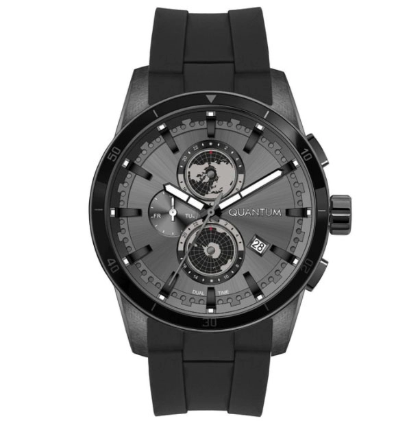 Ένα σύγχρονης σχεδίασης ρολόι με χρονογράφο από τον γνωστό οίκο Quantum, με κάσα από ανοξείδωτο ατσάλι
