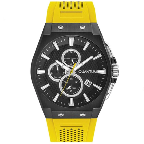ΡΟΛΟΙ QUANTUM  HNG939.654 QUANTUM Dual Time Yellow Silicone Strap