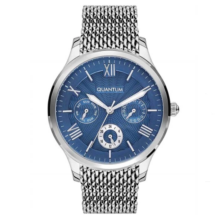 Ένα σύγχρονης σχεδίασης ρολόι από τον γνωστό οίκο Quantum, με κάσα από ανοξείδωτο ατσάλι και κρύσταλλο με μη ανακλαστική επίστρωση.