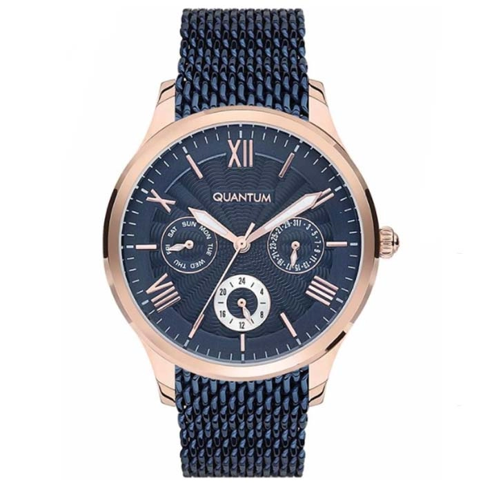 Ένα σύγχρονης σχεδίασης ρολόι από τον γνωστό οίκο Quantum, με κάσα από ανοξείδωτο ατσάλι και κρύσταλλο με μη ανακλαστική επίστρωση.