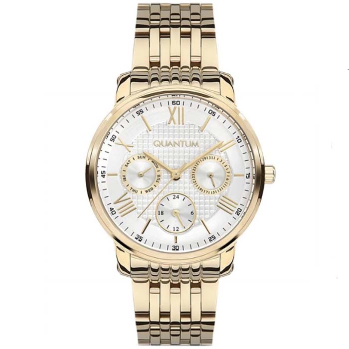 Ένα σύγχρονης σχεδίασης ρολόι από τον γνωστό οίκο Quantum, με κάσα από ανοξείδωτο ατσάλι και κρύσταλλο με μη ανακλαστική επίστρωση.