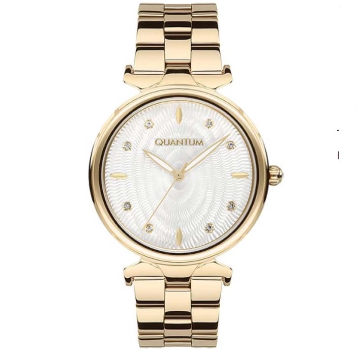 Ένα σύγχρονης σχεδίασης ρολόι από τον γνωστό οίκο Quantum, με κάσα από ανοξείδωτο ατσάλι και κρύσταλλο με μη ανακλαστική επίστρωση.