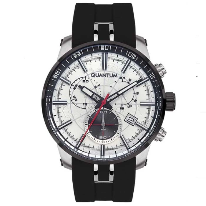 Ένας σύγχρονης σχεδίασης χρονογράφος από τον γνωστό οίκο Quantum, με κάσα από ανοξείδωτο ατσάλι και κρύσταλλο με μη ανακλαστική επίστρωση