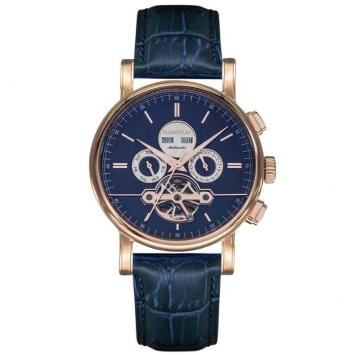 Ένα σύγχρονης σχεδίασης ρολόι από τον γνωστό οίκο Quantum, με κάσα από ανοξείδωτο ατσάλι και κρύσταλλο με μη ανακλαστική επίστρωση.