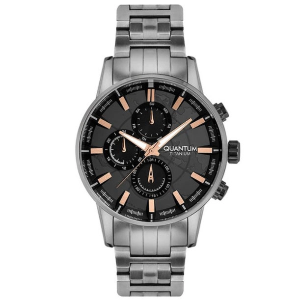 Ένα σύγχρονης σχεδίασης ρολόι από τον γνωστό οίκο Quantum, με κάσα και μπρασελέ από τιτάνιο.