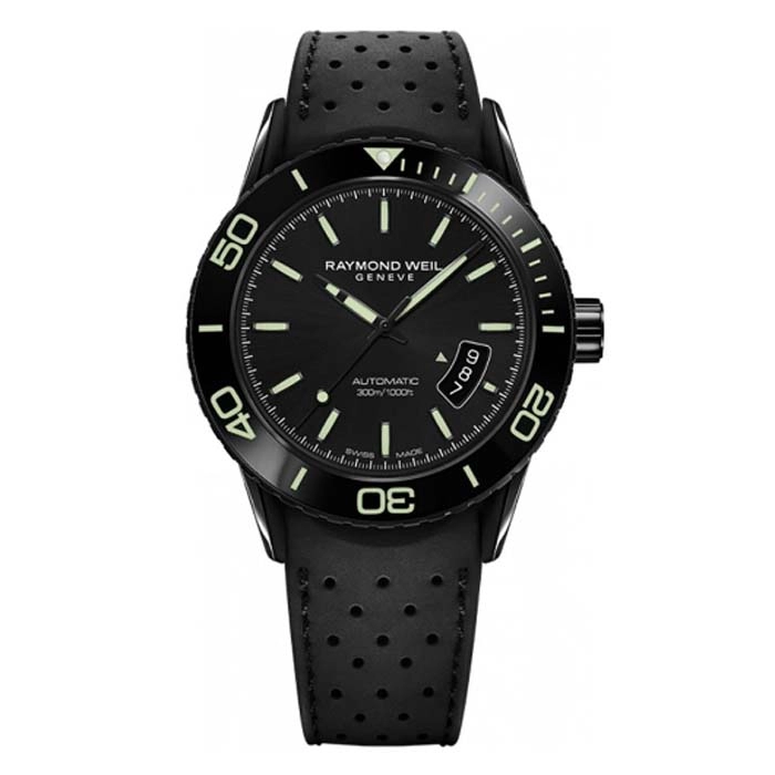 Του οίκου Raymond Weil Geneve ένα ρολόι από ανοξείδωτο ατσάλι με μαύρο καντράν και αυτόματο μηχανισμό με μαύρο λουράκι απο καουτσούκ