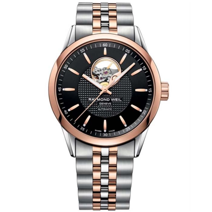 Του οίκου Raymond Weil Geneve ένα ρολόι από ανοξείδωτο ατσάλι και ροζ ανοξείδωτο ατσάλι με μαύρο καντράν με αυτόματο μηχανισμό